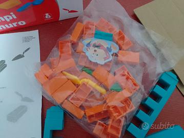 Si costruisce il muro con i mattoncini di plastica e poi a turno si fa cadere un mattone per volta Senza far cadere l'uovo
