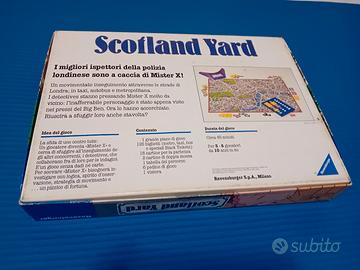 vendo gioco da tavolo scotland yard della ravensburger. capellino assente per il resto i pezzi sono tutti presenti ed in ottime condizioni (quasi vicino al nuovo). pezzi presenti: tabellone gioco, libretto regole di gioco, segnalini giocatori e mister x, tabella rigida in plastica per le mosse di mister x (in perfette condizioni), tessere biglietti metropolitana, bus, taxi, caselle di partenza, neutra partenza (bianca) per mister x, black ticket, mosse x2 tutte in più che ottime condizioni. scatola integra , parte sotto della scatola con leggeri segni del tempo ma nel complesso più che buona. tutto come da foto.