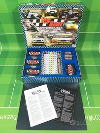 Gioco da tavolo corse delle auto Top Gear Motorsport. Originale d'epoca inizio anni '90, pubblicato dalla The Games Team nel 1993. Un gioco di azione veloce di abilità, strategia e conoscenza delle corse!. Gioco usato ma in perfette condizioni. Completo di ogni sua componente: 1 tabellone di gioco, 1 dado blu, 1 dado rosso, 6 contagiri colorati, 6 caschi da corsa colorati, 388 carte motorsport (in lingua inglese), 12 carte pneumatico (in lingua inglese), 1 set di gettoni carburante rosso, 1 set di gettoni carburante blu, 1 tabellone contagiri. Include libretto istruzioni in italiano/inglese. Confezione originale inclusa ed in perfette condizioni.