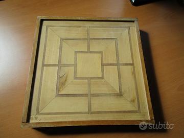 Gioco Dama e Tela in legno intarsiato, primo novecento. Completo, cm 31x31.