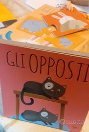 gioco educativo degli opposti Sassi junior composto da 10 puzzle da due tasselli più libro di 10 pagine per imparare gli opposti attraverso la manualità