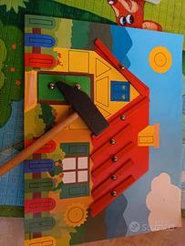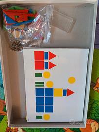 gioco vintage anni 90 Ravensburger per i futuri artigiani, per sviluppare la manualità. consiste nel fissare dei tasselli di legno ad un pannello con dei chiodini per comporre delle figure seguendo dei disegni. in ottime condizioni con quasi stutte le tesserine