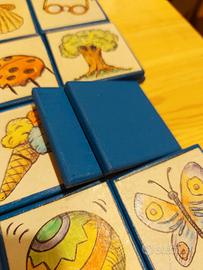 vendo gioco della memoria fatto a mano, disegnato e colorato su base di legno di mm 55x55 spessore mm 5.
