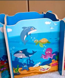 Vendi bellissimo "Gioco della Pesca" in legno della linea Playtive, ideale per bambini dai 2 anni in su. Un gioco classico e intramontabile che aiuta a sviluppare la coordinazione occhio-mano, la motricità fine e stimola i primi approcci con i numeri. Il set è completo e composto da 20 pezzi: 14 figure in legno colorate (pesciolini, tartaruga, delfino, polpo, tesoro, ecc.) dotate di calamita. 2 canne da pesca magnetiche per giocare in compagnia. Struttura "laghetto" componibile in legno, con bellissime illustrazioni marine su tutti i lati. Ogni figura ha un numero sul retro, utile per inventare giochi a punteggio o imparare a contare mentre si pesca. Condizioni: Ottime, come visibile in foto. Completo di scatola originale. Materiale: Legno di alta qualità. Certificazioni: Marchio GS (Sicurezza Garantita) e TÜV Rheinland. Perfetto come idea regalo educativa e divertente!⭐️