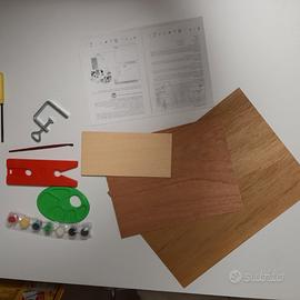 Divertente ed istruttivo gioco di bricolage, per imparare a lavorare con il legno. Completo di 2 seghetti, lame di ricambio, morsa, trapano a mano, tavole da disegno, tavolette di legno ed struzioni. Ovviamente mai usato!