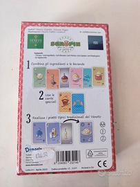 Gioco di carte rapido e divertente a tema piatti e bevande tipiche del Veneto. Giocatori:Da 2 a 4 giocatori. Età consigliata:8 anni in su. Durata:Circa 30 minuti.