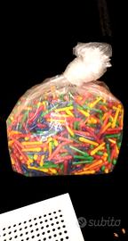 Gioco di chiodini completo di plancia bucata, chiodini, due contenitori neri, busta di chiodini e foglio di schema.