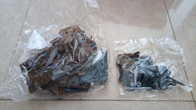 La confezione, in perfette condizioni, comprende il manuale di istruzioni, un foglio di adesivi e 4 guerrieri con armi.