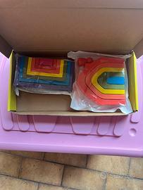 Gioco di formine ad incastro per bambini. Scatola un po’ rovinata ma ccontenuto interno ancora nella sua plastichina.
