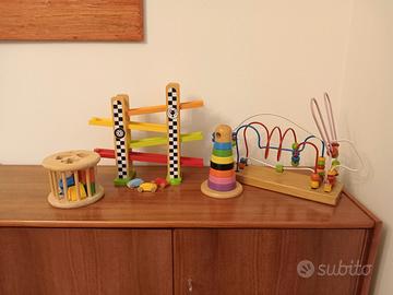 In vendita anche altri giochi di legno, in ottimo stato. Aiutano il bambino ad acquisire familiarità con forme e colori, sviluppare concentrazione, motricità fine e coordinazione occhio-mano. Sconto per più pezzi.
