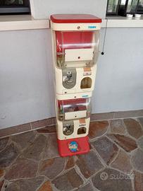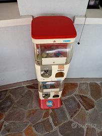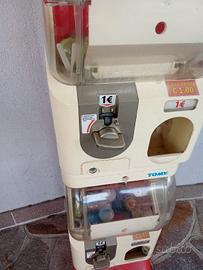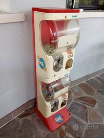 Distributore palline gioco Tomy...Con gettoniera 1€ Funzionante...Levate le due serrature sotto e sopra per cui sportelli aperti (se da usare come Regalo simpatico a uso domestico basta chiuderle con un nastrino)...Dietro ci sono i due cassetti raccogli soldi...Ristrutturato in ottime condizioni