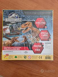 Simpatico gioco per bambini futuri paleontologi. Con appositi attrezzi si scava nel blocco di gesso per portare alla luce uno scheletro di T Rex