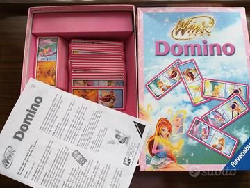 Gioco del domino a tema Winx, comprensivo di 28 tessere originali, suggerito dai 3 anni in su (marca Ravensburger, codice 21918).