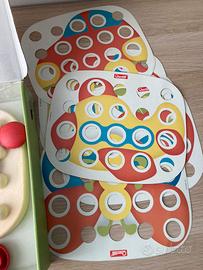 Gioco in bio-plastica dedicato ai più piccoli. Dotato di bottoni di grandi dimensioni ad incastro per sviluppare la motricità fine ed il coordinamento occhio-mano.