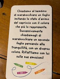 Gioco composto di 20 grandi carte ( 2 di esempio in foto), si propone di insegnare a gestire lo stress. Dai 2 anni. Mai usato. Prezzo vantaggioso ( confronta con negozio ) non scontabile