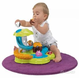 Gioco con diverse piste per le tre palline incluse.Facendole scivolare fino allo stagno girevole e premendo l'ippopotamo si attiva la zona che fa ruotare le palline e si attivano delle divertenti musiche