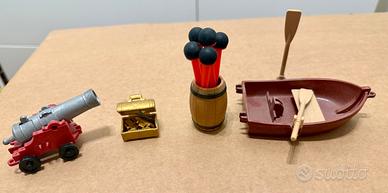 Galeone dei Pirati PLAYMOBIL È un veliero giocattolo galleggiante. Include sei personaggi pirata ognuno com propria spada. Come accessori: due cannoni funzionanti in grado di sparare proiettili (uno con carrello ed uno in prua), 6 proiettili, un bidone grande e tre piccoli, un barchino con due remi, una scimmietta, ancora con filo funzionante, uno scrigno, tre bandiere. Ottime condizioni. Lunghe massima 65 cm. Altezza massima 51 cm. 35€.
