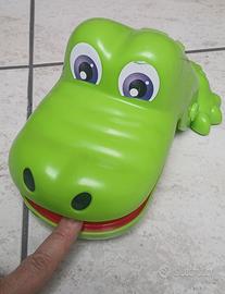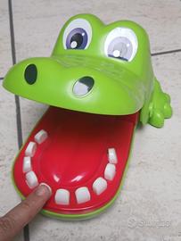 Vendo simpaticissimo gioco da tavolo per bambini dai 3 snni in su, Cocco dentista, 2 o più giocatori, originale della Hasbro. Il gioco consiste nel premere a turno i denti del coccodrillo e se si preme il dente dolorante, il coccodrillo chiude la bocca. Gioco funzionante. Non servono pile. L'occhio sinistro leggermente usurato. Prezzo originale: 14.99 Euro.