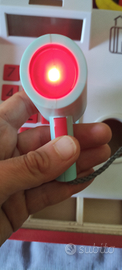 Gioco in legno, cassa. Con display calcolatrice e lucina sul dispositivo codificatore spesa.