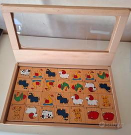 Gioco in legno domino fattoria composto da n. 28 tessere con scatola in legno originale ottime condizioni