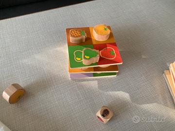 Da 2 a 4 giocatori, a partire dai 3 anni, ma divertente anche per gli adulti. Gioco semplice ma molto divertente. Con il mio bambino abbiamo giocato moltissimo. Si deve tirare il dato e trovare la frutta del proprio tabellone e poi una volta completato un piano di costruisce quello successivo, stando attenti a non fare cadere la torre che cresce in altezza.
