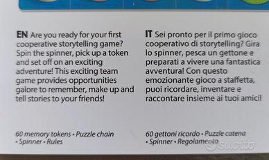 Gioco che stimola la fantasia e l'espressività stimolando i bambini ad inventare storie usando gli indizi su mi cartoncini.