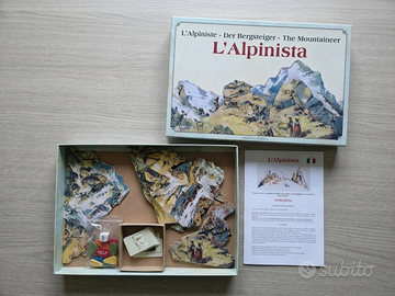VENDO Gioco in scatola L’Alpinista per gli appassionati dei giochi da tavolo e della montagna contenuto della scatola: 3 tabelloni verticali da assemblare, 6 alpinisti (pedine), 8 gettoni “Help”, 4 carte, 1 dado, libretto istruzioni in quattro lingue Dimensioni: tabellone aperto L 95 cm, H 25 cm; scatola 47×30 cm. Da 2 a 6 giocatori, dai 6 anni in poi CONSEGNA SOLO A MANO