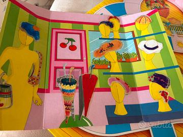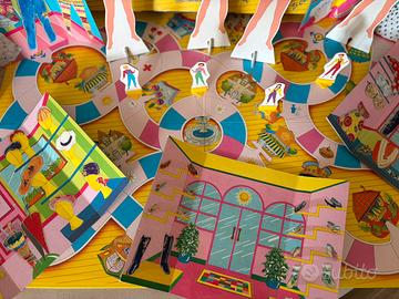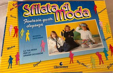 Gioco da tavolo vintage Sfilata di Moda prodotto da Clementoni negli anni '80. E’ in perfette condizioni mancano soltanto un piedistallo per la “modella” e un adesivo di un occhiale da sole. La scatola ha una imperfezione sull’angolo in alto.