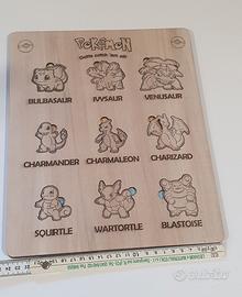 Gioco in legno con personaggi dei pokemon da incastrare nel tabellone.