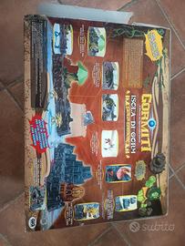 Gioco in scatola dell'isola di Gorm versione limitata Gold Edition della serie dei Gormiti, scatola rovinata, completa di tutti i pezzi dell'isola ma mancano purtroppo i personaggi che erano nella scatola. Usata forse una volta.