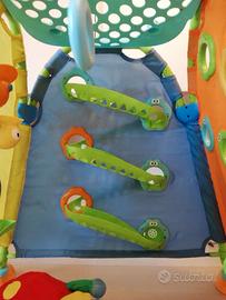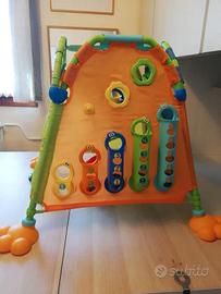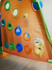 La tenda dei giochi è Una sorprendente Casa Giocattolo ricca di colori ed affascinanti novità dai 12 mesi ai 5 anni. Marca Tomy Giordani dai dodici mesi in su, montaggio facile e intuitivo, istruzioni allegate, marchio CE certificato, allegato pupazzo colorato. Alta 74 cm larga 80, a forma di un quadrilatero, giocabile interno esterno, richiudibile occupa poco spazio. Con cinque palline. Campanella e pallina sonora, pagata 90 euro al TOYS giocattoli . Gioco di movimento, di incastri, di suoni, di rotolamento delle palline.