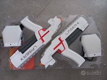 LASER X Real-life Laser Gaming Experience Giochi Preziosi include 2 pistole con indicatore dei colpi rimasti, effetti luce, luce led che indica il tuo team di appartenenza e la pistola può colpire fino a 60 metri; 2 ricevitori selettore del team: rosso, blu o neutro e indicatore di vite rimaste in gioco. Possibilità di gioco indoor e outdoor NUOVO ancora imballato