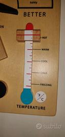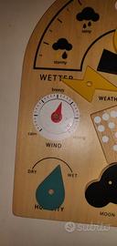 Gioco di legno per indicare il tempo atmosferico. Nuovo,nella confezione originale.