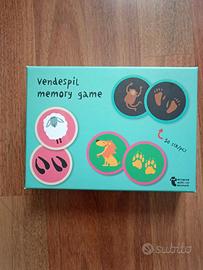 Memory in cui si devono ricordare le posizioni degli animali abbinate alle rispettive impronte (I colori aiutano ad abbinare le tessere). Dai 3 anni