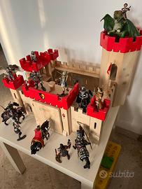Castello medievale in legno con torrione e ponte levatoio. Corredato di soldati e cavalieri