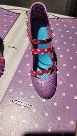 Gioco usato, scarpine già costruite, possibilità di cambiare lacci, perline. Vetrina in cartone mai costruita ancora intera nella confezione. Lunghezza ogni scarpina 11,8 cm.