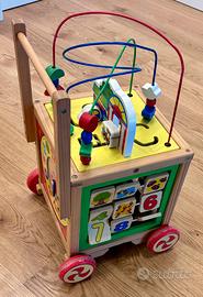 Il carrello Nuheby è un giocattolo multifunzione in legno che funge anche da girello primi passi. È progettato per accompagnare i bambini nelle prime fasi di sviluppo e nel gioco d'imitazione, incoraggiando la coordinazione e l'apprendimento attraverso l'interazione.