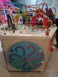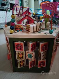 Gioco con tantissime attività sia nella parte sopra, sia in ogni lato dell' esagono In legno massello, non truciolato molto resistente. Gioco in perfette condizioni.