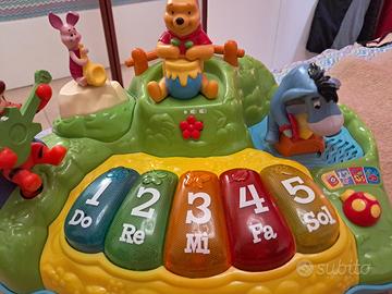 Gioco musicale Clementoni con Winnie the Pooh e i suoi amici. Multifunzione. Spostando i vari soggetti si riproduce il suono dello strumento che hanno in mano.