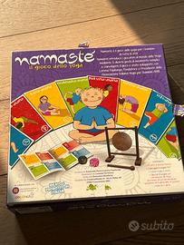 Gioco con il gong in ottone, carte e dadi carte con posizioni ( asana) dello yoga. Molto divertente per i bambini ( e non solo) .