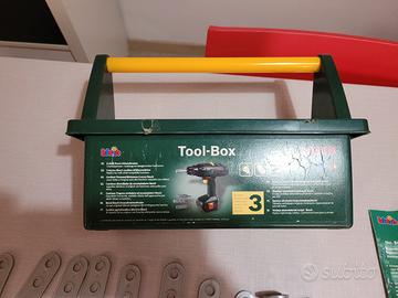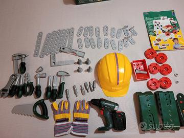 gioco bambino Officina banco da lavoro Klein Bosch 8485 + cassetta 8520. Super fornito di accessori (più di 150 pezzi) come da foto. Sono più set. Unico difetto: trapani sono da controllare. pagato nuovo 130.