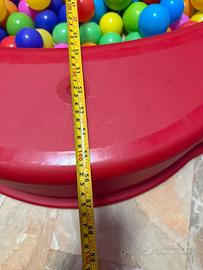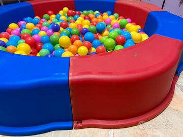 “Piscina” per bambini completa di circa 450 palline di misure diverse (acquistate neanche un mess fa) Composta da 8 pezzi 4 blu 4 rossi Come da foto uno o due dentini mancanti ma rinregge perfettamente.