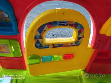 Il portone si apre così da poter permettere il passaggio dei piccoli da un lato all'altro. Il campanello funziona tramite batterie come anche altre parti che quando vengono mosse o girate emettono dei rumori. Il gioco è praticamente nuovo come si vede in foto. Molto leggero e facile da spostare da una stanza all'altra.