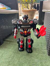 robot per bambini con effetti vocali e luci pigiando un bottone.