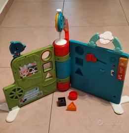 Giocattolo di apprendimento elettronico 2 in 1 che si trasforma da libro di fiabe sit-at a robusto centro di attività verticale con 360 gradi di gioco