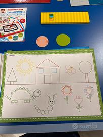 Disegno e racconto Sapientino Art per bambini dai sei ai sette anni. Gioco educativo per imparare a disegnare. Solo una scheda utilizzata e completo del materiale che vedete in foto. Con la pastelli matita glitter mai usati