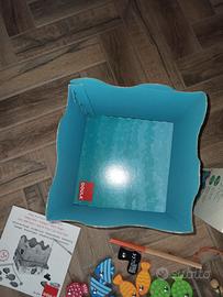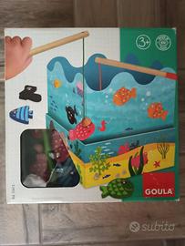 Gioco di pesca magnetica Goula in ottime condizioni come da foto, in legno per bambini 3+ anni. Include base, 12 pesci magnetici colorati e una scarpa e 2 canne da pesca in legno. Ideale per sviluppare coordinazione e motricità fine.