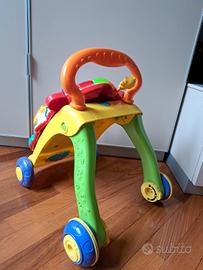 Carrellino primi passi per aiutare i più piccoli ad imparare a camminare. Tantissimi suoni e attività diverse per stimolare diverse motorietà e tipi di ingaggii. Le ruote hanno 2 velocità in base all'abilità del/la bimbo/a.