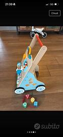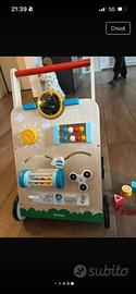 Vendo gioco per primi passi in legno, completo di 4 ruote che sono un po’ dure per i primi passi. Molto stimolanti anche i giochi davanti