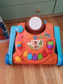 Per i primi passi diventa tavolino con giochi di suoni oppure diventa carrello per camminare